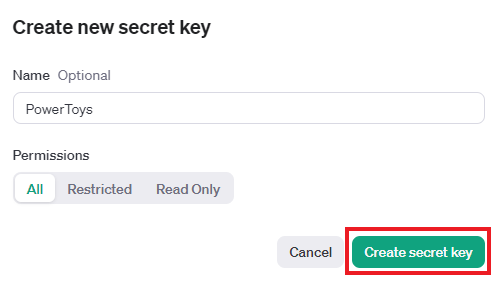 3. Enter a name and click “Create secret key.”